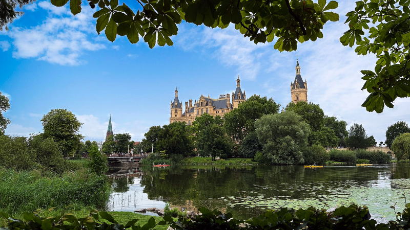 | シュヴェリーン湖上に浮かぶ壮麗な古城 北のノイッシュヴァンシュタイン城と呼ばれております |